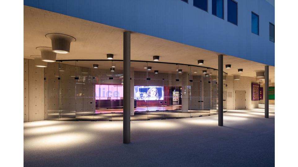 Театр разместился между зданиями административно-торгового комплекса Ko-Bogen II на площади Густаф Грюндгенс-платц (Gustaf-Grundgens-Platz).