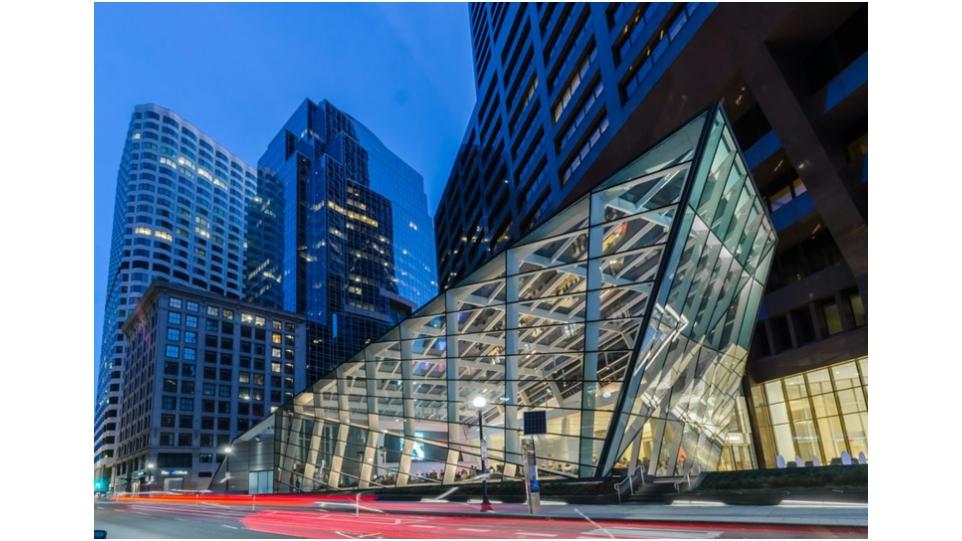 Здание в форме «неправильной», асимметричной призмы было открыто в 2018 году на Федерал-стрит Бостона и преобразило неуютную, продуваемую ветрами площадь вдохнув в неё новую жизнь.