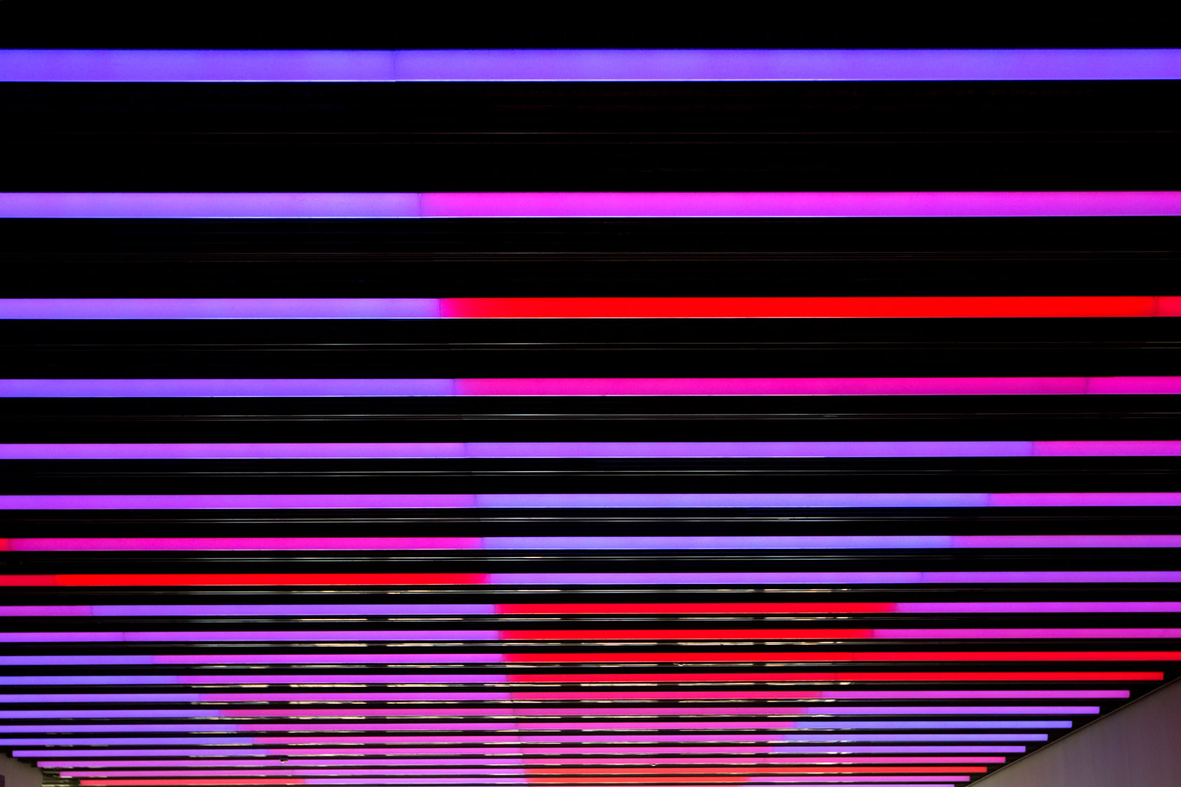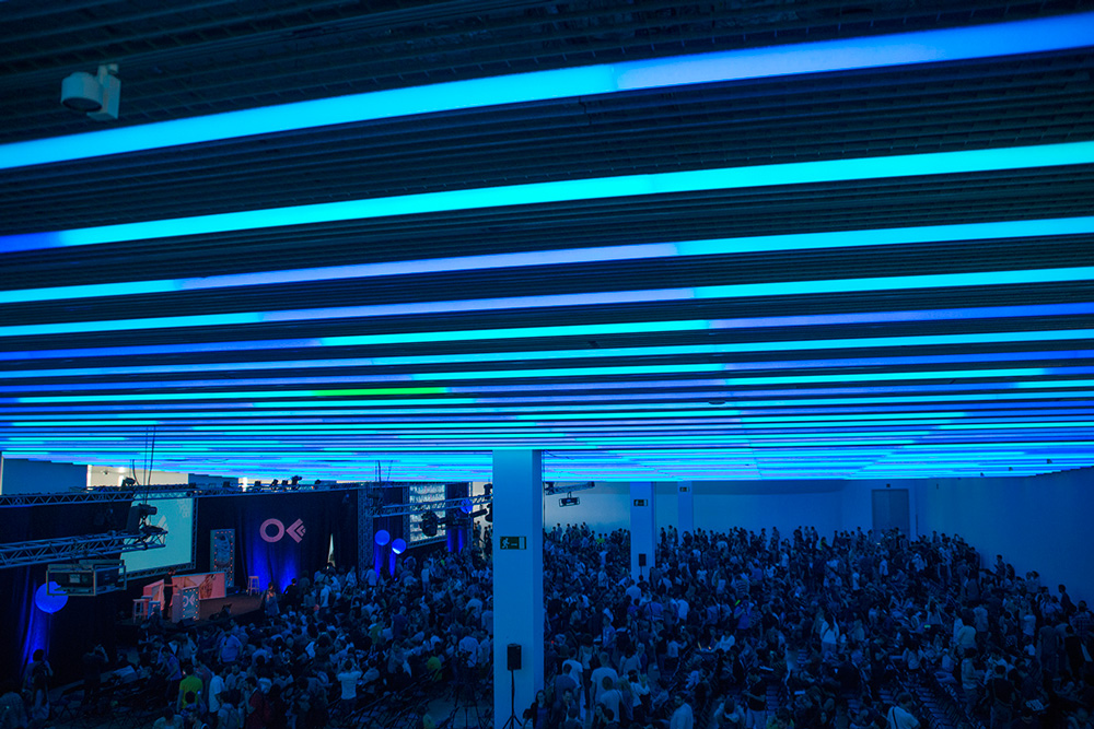 Более 50 параллельных светящих линий длиной 40 м каждая, содержат непрерывные ряды линейных светодиодных модулей, заключённых в оболочки из опалового полимера.