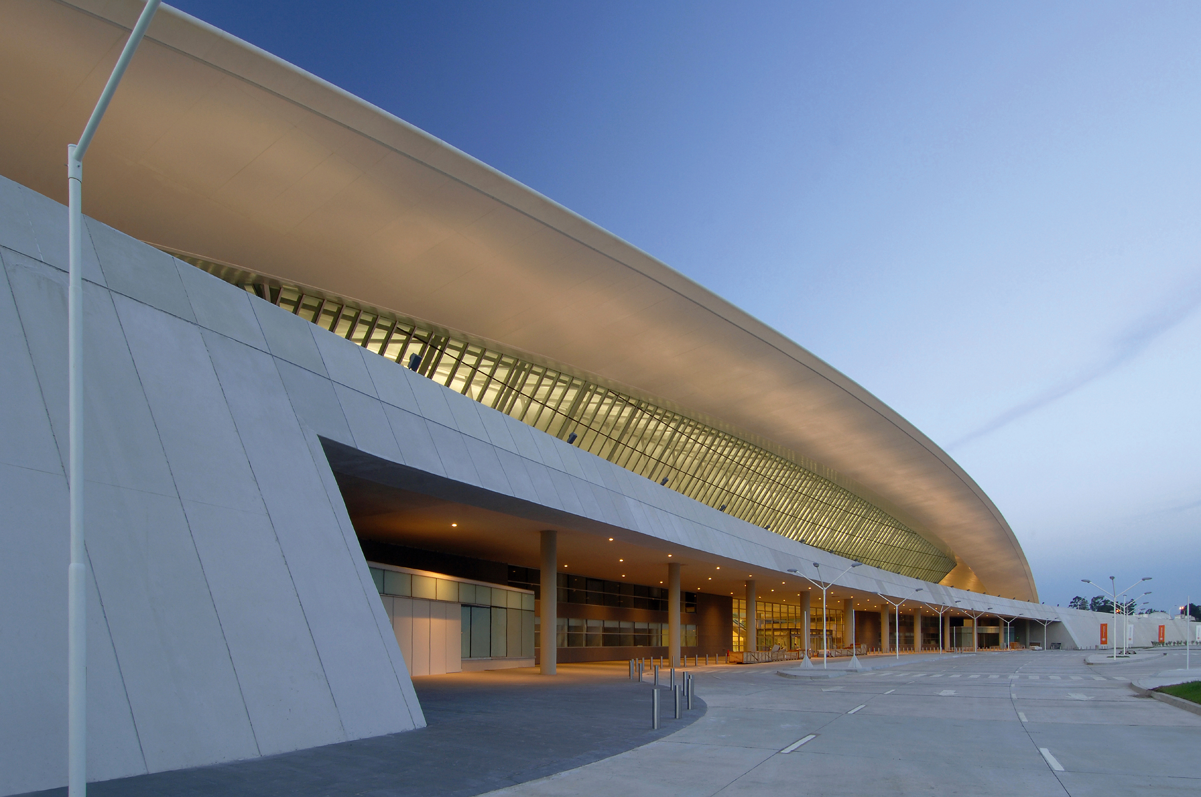 Наиболее выразительный архитектурный элемент аэрокомплекса Карраско, определяющий его облик - крыша длиной 350 м и шириной 80 м. Внутренние объемы залов перекрыты центральным участком крыши (его длина 150 м), справа и слева участки крыши длиной по 100 м размещены над открытыми терассами, подъездами и парковками.