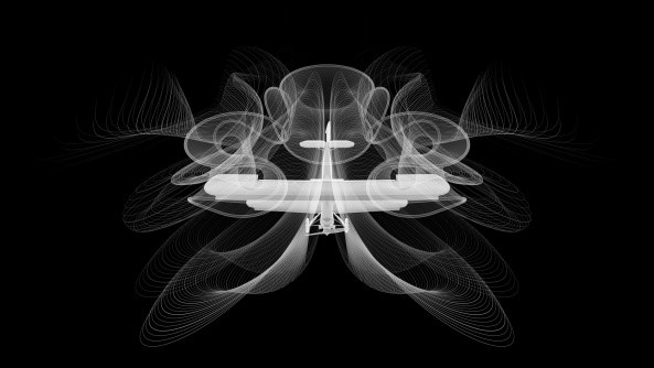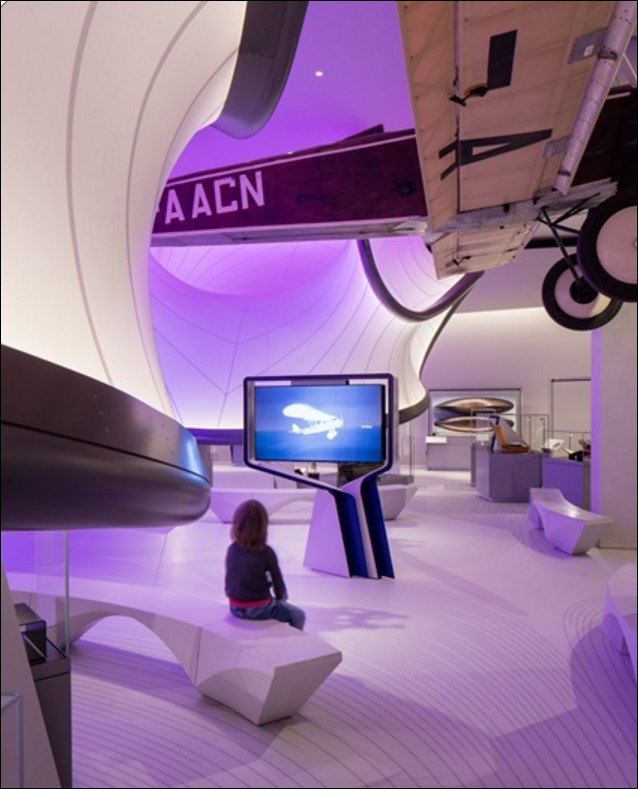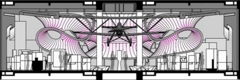 Посетители благодаря световым метаморфозам «видят» как воздух перемещается вокруг летящего самолета – визуализуется векторное поле, создаваемое крыльями.
