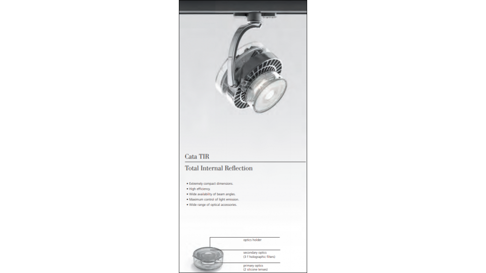 Cata TIR (Total Internal Refleсtion). В оптическом блоке используется явление полного внутреннего отражения.
