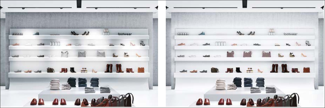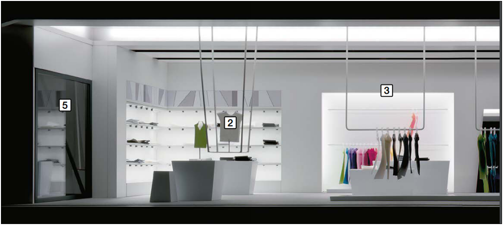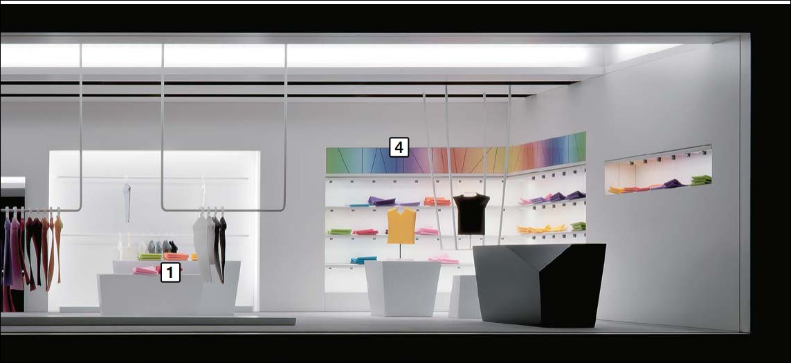 Преимущественные варианты применения светильников INTRO liteCarve® в магазине одежды: