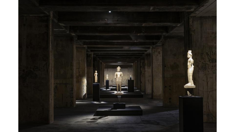 Первое, что воспринимается посетителем – это, как будто плавающие в невесомости, фрагменты кхмерской скульптурной пластики.