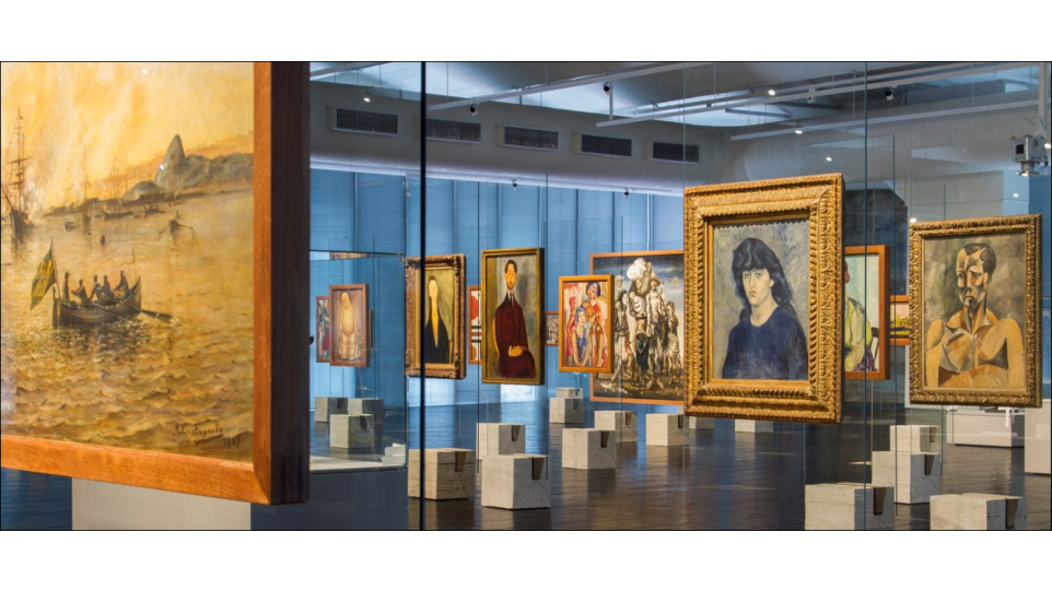 Концептуальная гуманистическая идея архитектора была в том, чтобы отказаться от классического размещения произведений живописи на стенах залов, органично ввестичеловека вмирживописи, физически приблизить людейк работам великих мастеров, датьим возможность свободного перемещения в экспозиционном объеме.