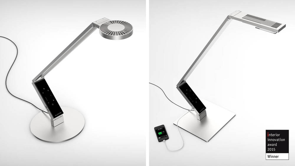 Настольный светильник LUCTRA, созданный фирмой DURABLE Hunke & Jochheim на базе матрицы цветных и белых светодиодов, позволяет индивидуально регулировать как уровень освещенности, так и цветовой оттенок освещения - от холодно-белого света с повышенной голубой составляющей 6000 К до тёпло-белого 2700 К с увеличенной красной компонентой.