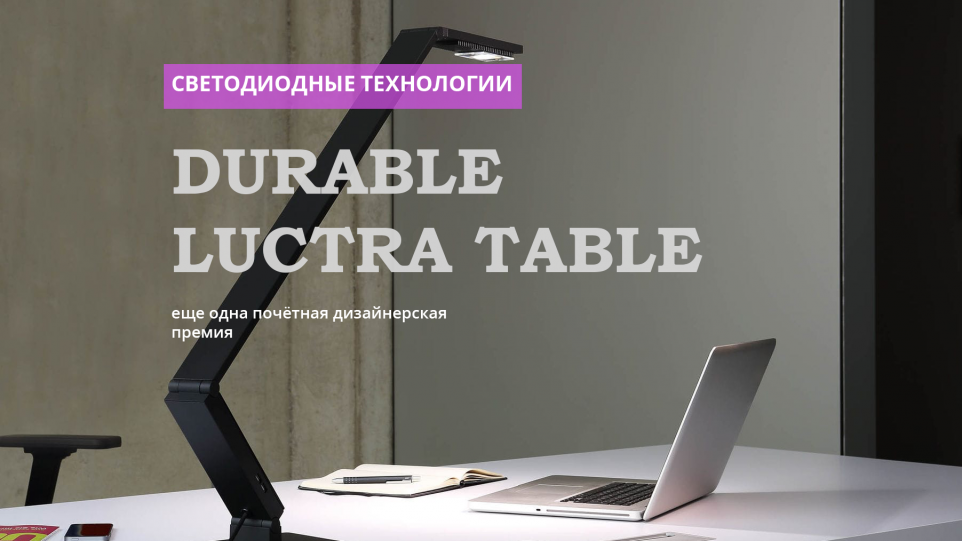 Ранее специалисты отметили международными премиями еще один светильник DURABLE LUCTRA FLEX - это мобильная версия настольного светильника DURABLE LUCTRA TABLE с аккумулятором, подробнее в нашем материале.