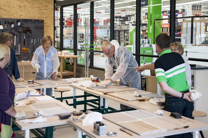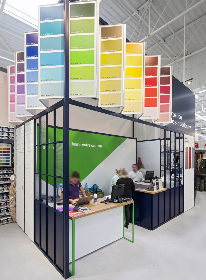 Развитие предполагает движение в сторону более тесного взаимодействия покупателя с представленными материалами и получение нового уникального опыта. Пространство гипермаркета разделено на зоны, внутри которых покупатель может пользоваться и изучать любые материалы и инструменты.