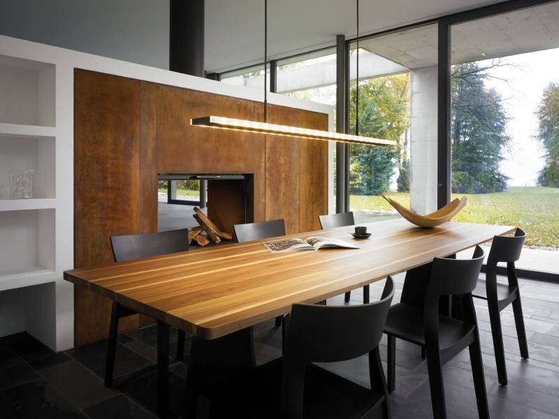 Специальная оптическая система оптимально перераспределяет световой поток светодиодов: 70% его излучается вниз, на поверхность стола, 15% - на потолок, 15% - в боковые зоны пространства.