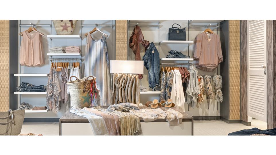 В интерьере магазина общую концепцию оформления дополняют видеосюжеты на настенных дисплеях, а также транслируемые записи звуков прибоя и крика чаек.