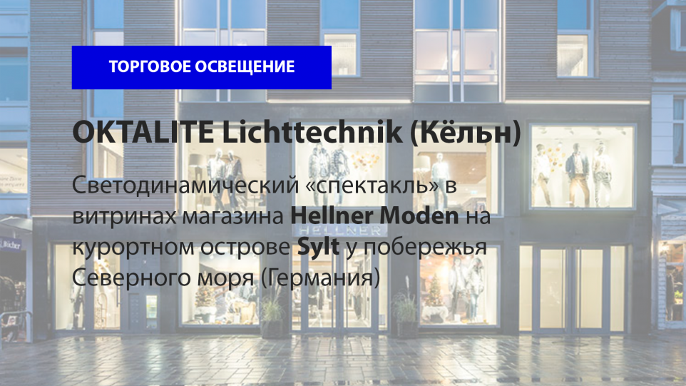 Виртуальный прибой Северного моря как бы продолжается и у магазина моды в виде луча света, который «перекатывается», как волна, от одной витрины к другой.