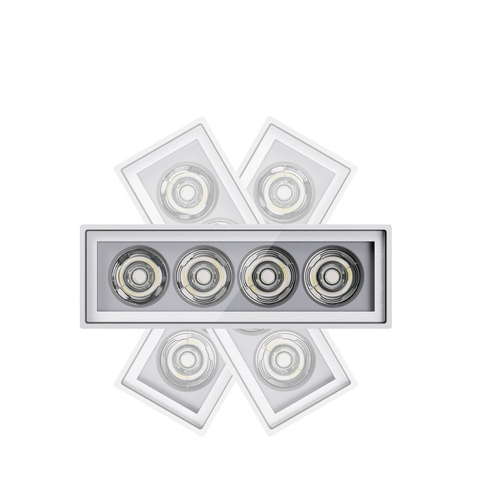 Серия включает 3 варианта исполнения, отличающиеся потребляемой мощностью и углами рассеяния световых пучков: 9 Вт, 100; 18 Вт, 300; 36 Вт, 500;