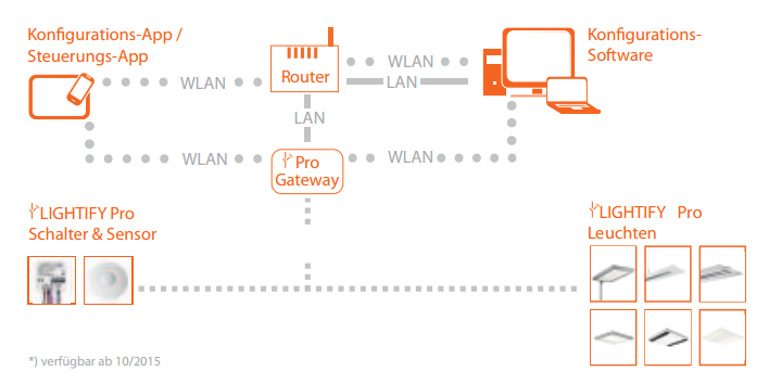 Ниже – принципиальная схема дистанционного беспроводного управления светильниками по технологии WLAN стандарт ZigBee Light Link