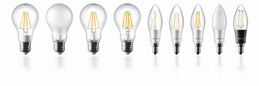 Новые светодиодные лампы под торговой маркой «vosLED» почти полностью воспроизводят внешний вид ламп накаливания начала ХХ в. с угольной нитью накала, но потребляют ничтожно мало электроэнергии (их мощность от 6,5 до 2 Вт); снабжаются цоколями Е27 и Е14 и заменяют по световому потоку обычные «запрещенные» лампы накаливания от 15 до 60 Вт.
