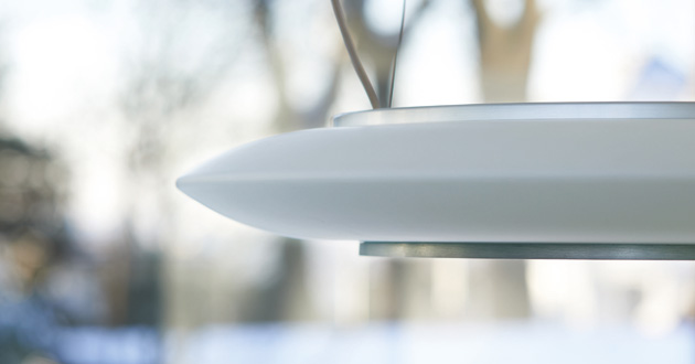Несущее алюминиевое кольцо совмещено с рассеивателем из опалового стекла ручной выдувки.